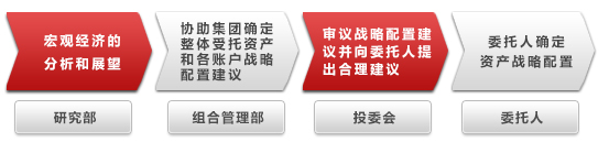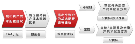 组合管理部每月提出各帐户资产战术配置方案的建议,由投委会审议决定